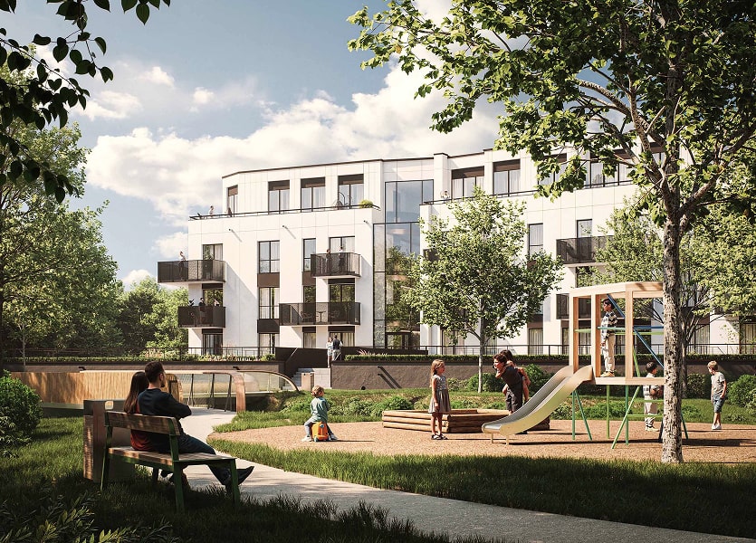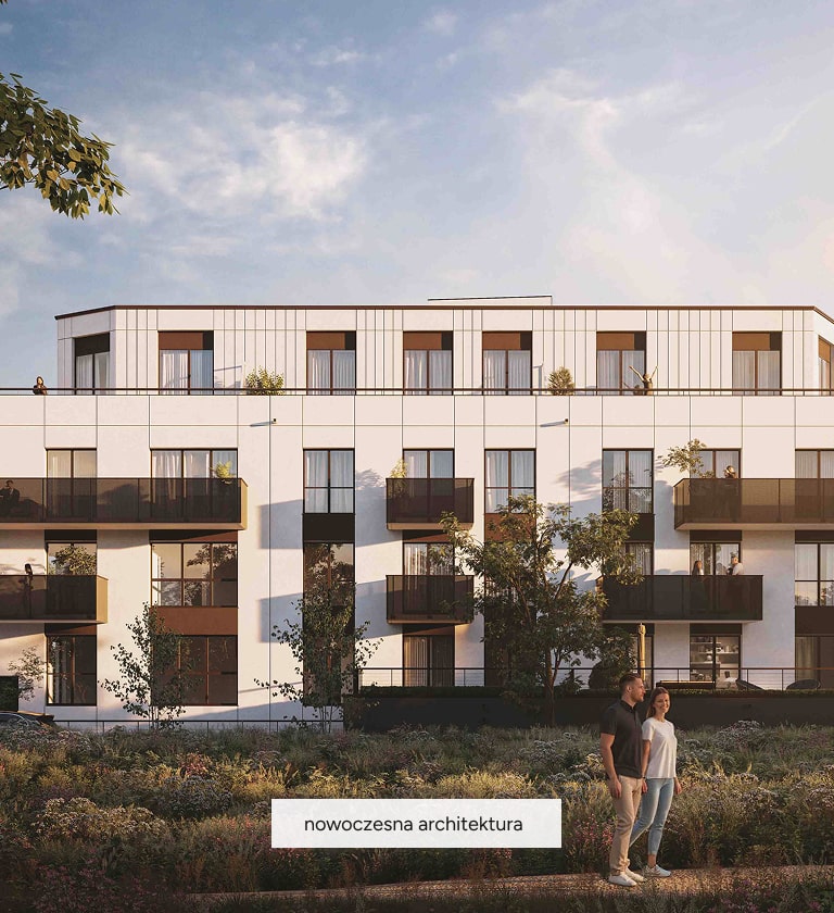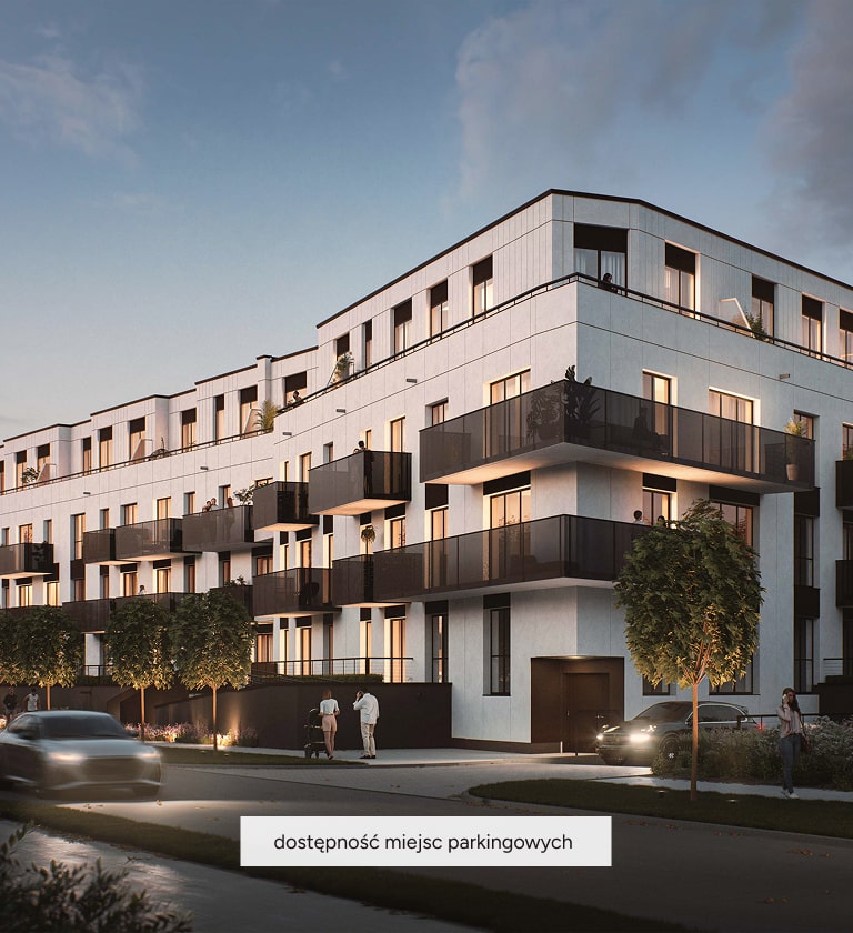 - 85 apartamentów od 30 do 80 m² – każdy z balkonem, tarasem lub ogródkiem.