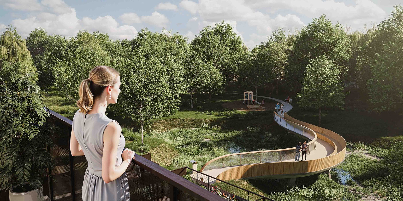 Wyobraź sobie codzienność, w której poranek zaczynasz kawą z widokiem na naturę. Wybierasz się na spacer z pupilem w cieniu drzew, dzieci bawią się w bezpiecznie wydzielonej strefie, a popołudniowa joga lub crossfit odbywają się w naturalnej scenerii.